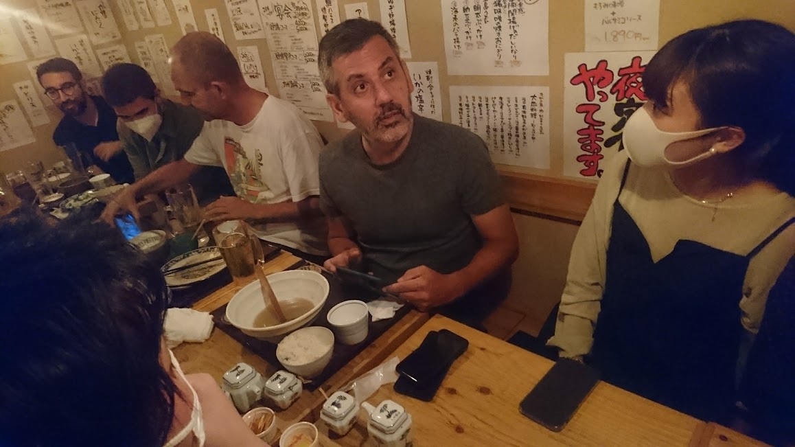 選手村からの帰り道、八重洲の居酒屋で夕食をとっていると、奥の席に外国人グループが入って来た。声をかけたらポルトガル国営放送(テレビ局)の東京オリンピック取材チームとの事。日本人に話しかけられたのは初めてっぽい。すごく喜んでくれる。
