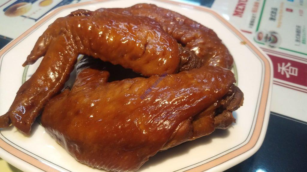 スイスチキン?? 香港の B級グルメ?と思いきや、列強の時代の産物。1800年代清朝末期の広州“太平館餐廳”、外国人客とのやりとりで“Sweet Chicken”と”Swiss chiken”を聞き間違い、この料理名になったとか。鹵水(漢方スパイスで煮込んだ醤油タレ)で煮込んだ手羽元。