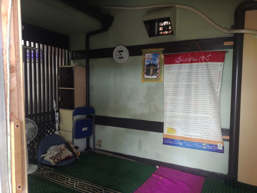 6畳ほどの小さな部屋がそうだった。汗の匂いが、強くした。キブラ(メッカの方向を指す矢印)は無かった。