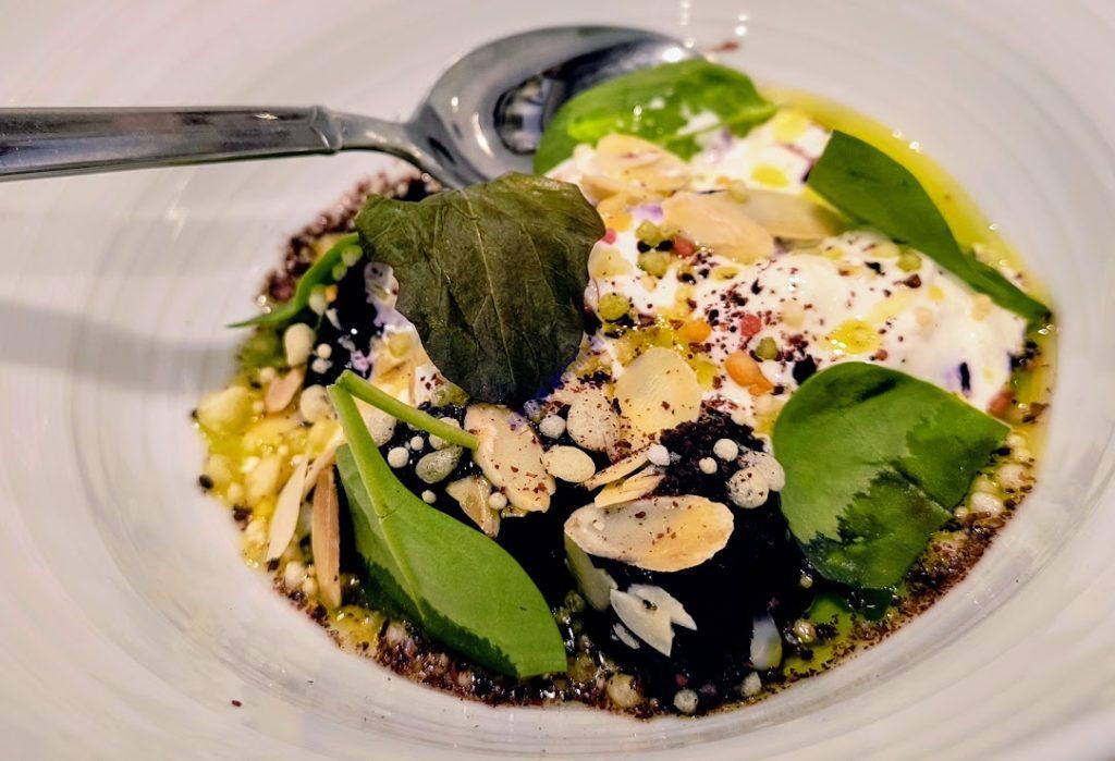 「焼きビーツとストラッチアッラチーズ」1500円。チーズに生クリームを混ぜたのに、ビーツの深紅の色が加わる。なんだこのおしゃれ感。