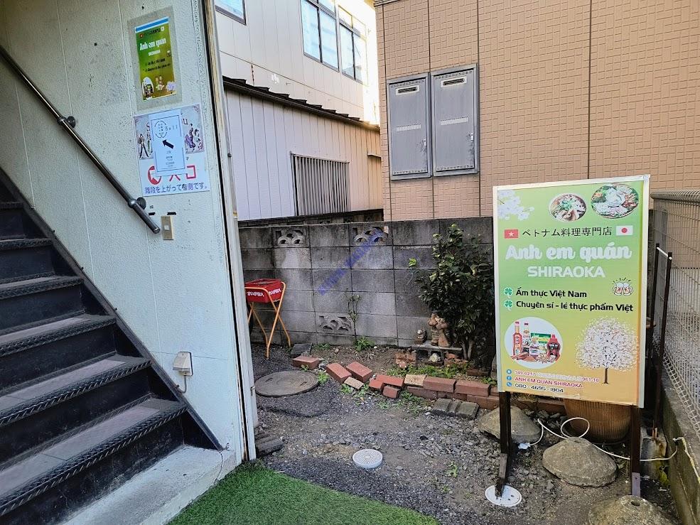 駅を降りてすぐに住宅地。日曜とは言えアイドルタイムで駅前ですら人影が無い。この時間でも開いている飲食店は無いかと思いgoooglemapで見つけたのは、駅から徒歩4分くらい離れた立地のベトナム料理店。通りに面している建物かと思ったら、入口は通りから入った路地奥にある。それも階段で上がった2階、全く目立たないところに有った。