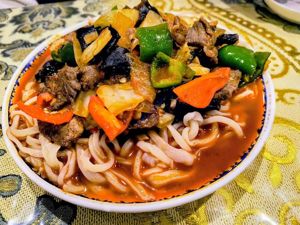 炒めラグメン、ウイグル風焼きうどん。大サイズ1300円。日本人でも食べやすい味。