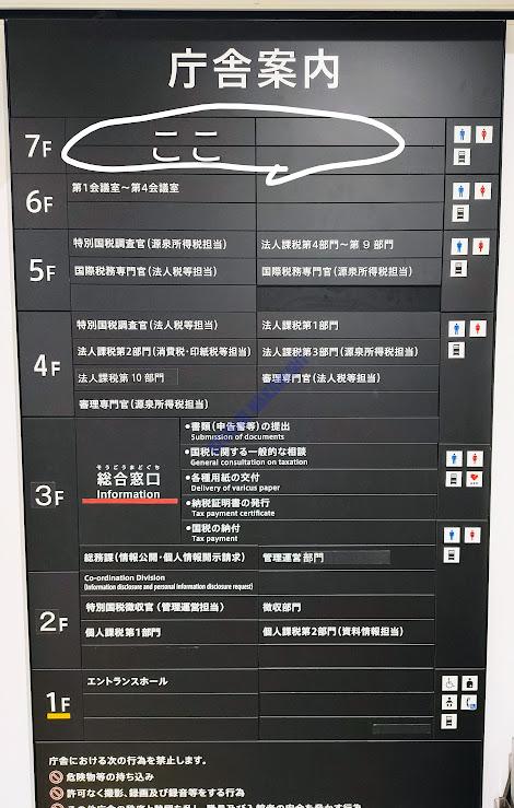 税務署は誰でも入れる国の施設ですが、ここ日本橋税務署ではその職員食堂も誰でも利用できるのです。税務署に入っての案内板には最上階の7階部分には何も書かれていませんが、気にせずエレベータに乗り込みます。そしてエレベータの7階の扉が開くとそこには「おいしい食堂」の文字が。
