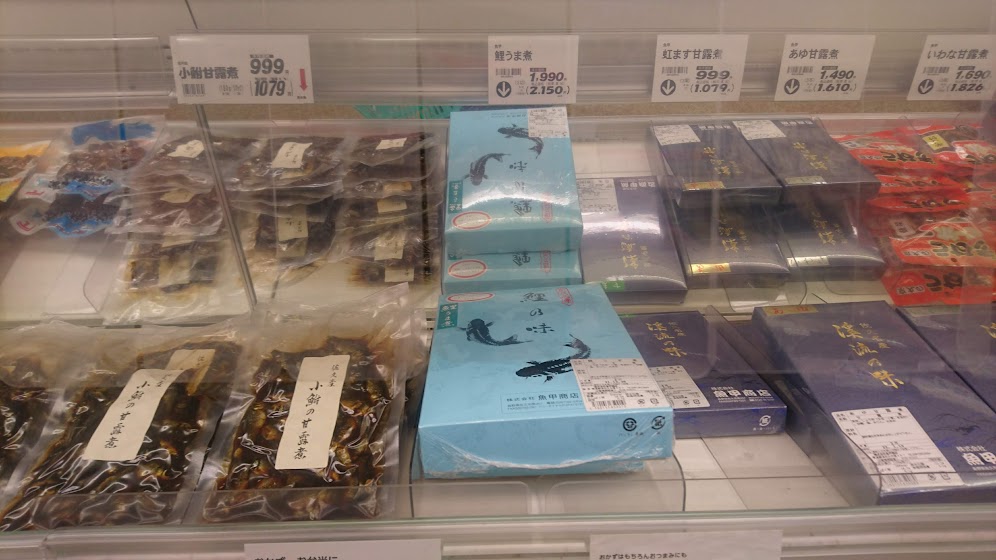川魚も日常的に売られている。佐久は伝統的にをよく食べる。